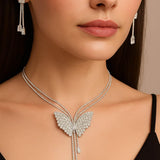 Silver Butterfly Pendant Necklace Set with Crystal-Studded Earrings ? Elegant and Lightweight Party Wear Jewelry